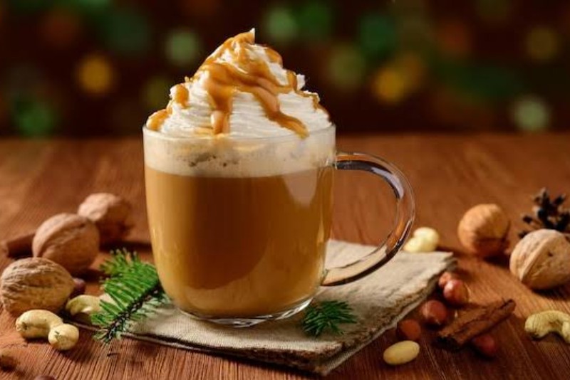 Kabak Baharatlı Latte geleneksel sonbahar baharat tatları buharda pişirilmiş süt espresso ve üzerine çırpılmış krema ve balkabağı turtası baharatı eklenmiş bir kahve deneyimi