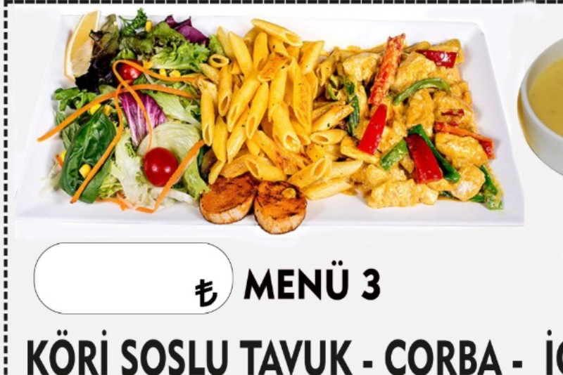 Köri soslu tavuk -salata-çorba ve seçeceğiniz içecek