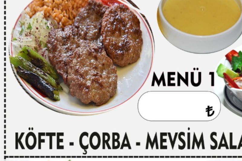 Köfte-salata-pilav -çorba ve seçeceğiniz içecek